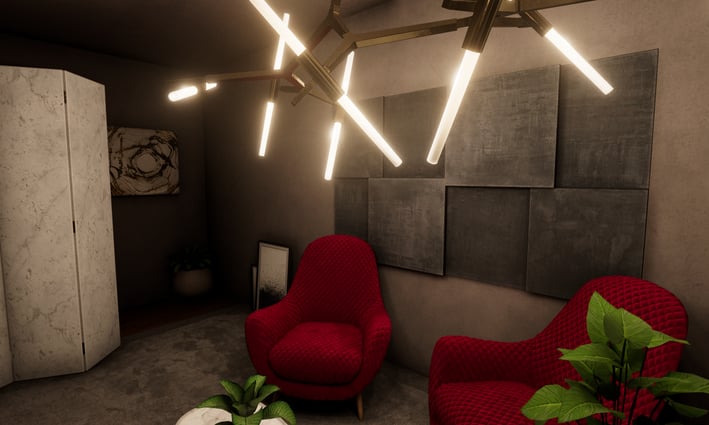 The client requested the creation of two small, lifelike rooms to serve as a visually captivating setting for their non-gaming interactive application, emphasizing the importance of realism within a limited space.